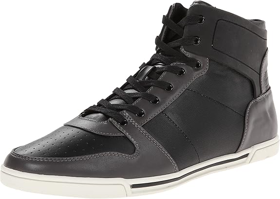 - High-top two-tone fashion sneaker with perforated toe and striped midsole