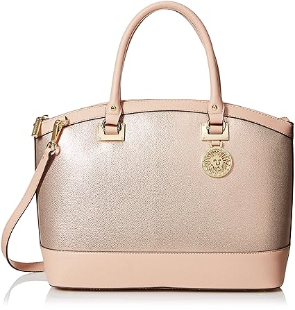 - Curved-opening satchel featuring gold-tone hardware, feet, and logoed fob