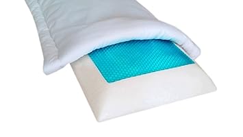 - The listing contains 2 quantity of pillow + 2 White Cover Cases. Blue Cooling Gel foam on the highly renowned memory foam mattress technology with therapeutic, joint easing, and pain relieving properties. The pillow and filled cover special dual zone design structure provides long lasting support and comfort similar to luxury high end pillow.