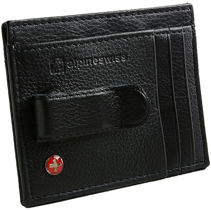 Leather Money ClipBy Alpine SwissIf you have never used a Front pocket wallet or a money clip like this you will both Love it for its efficiency and how it protects your lower back. Give one a try you will never go back to your big fat wallet again!Features:Measures: 4" x 3 1/8" x 3/8" Handmade and well constructedDurable Genuine Leather5 Credit Card Slots, some can carry more then 1 card ID WindowAlpine Swiss donates 250 meals every day to hungry children in the U.S. and around the world through our partnership with Children's Hunger Fund. These meals are hand delivered in a Food Pack, which will contain enough food to feed a family of 4-5 for a week to the homes of the needy by trained volunteers in their community, establishing relationships that foster genuine care. Your purchase fuels this effort! Thank you!