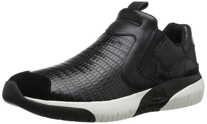 - Slip-on sneaker featuring reptile-textured upper with reinforced toe cap and elastic-goring insets