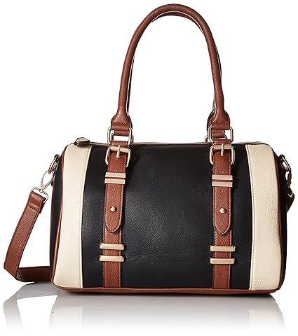 Ladies structured tote with double tubular straps with lock feature on front. Adjustable/removable cross body strap back zipper pocket. Closure type is top zipper.