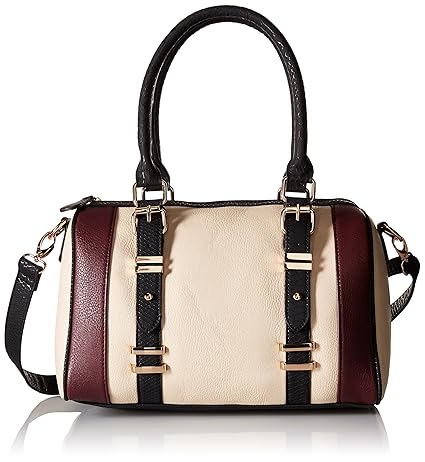 Ladies structured tote with double tubular straps with lock feature on front. Adjustable/removable cross body strap. Back zipper pocket.