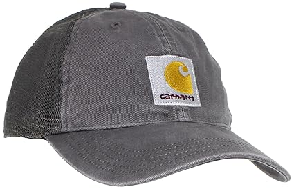 Made from 100 percent cotton, this cap has a 100 percent polyester-mesh back for breathability. Light with a medium profile, its sweatband wicks sweat for comfort with fast dry technology. Adjustable fit with a Carhartt label sewn on front.