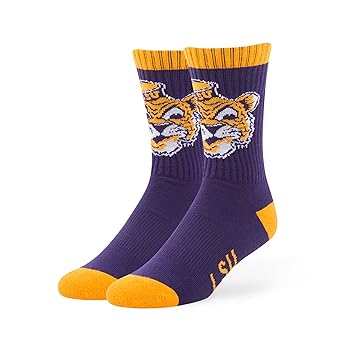 NCAA Louisiana State (LSU) Tigers Men's '47 Bolt Casual Dress Crew Socks, Purple, Large, 1-Pack