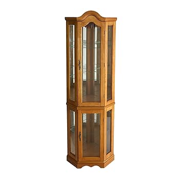 - Golden Oak Finish; Mirror backed with light; Tempered glass front; Cord length 9ft; One 25-Watt, type F light bulb (included)